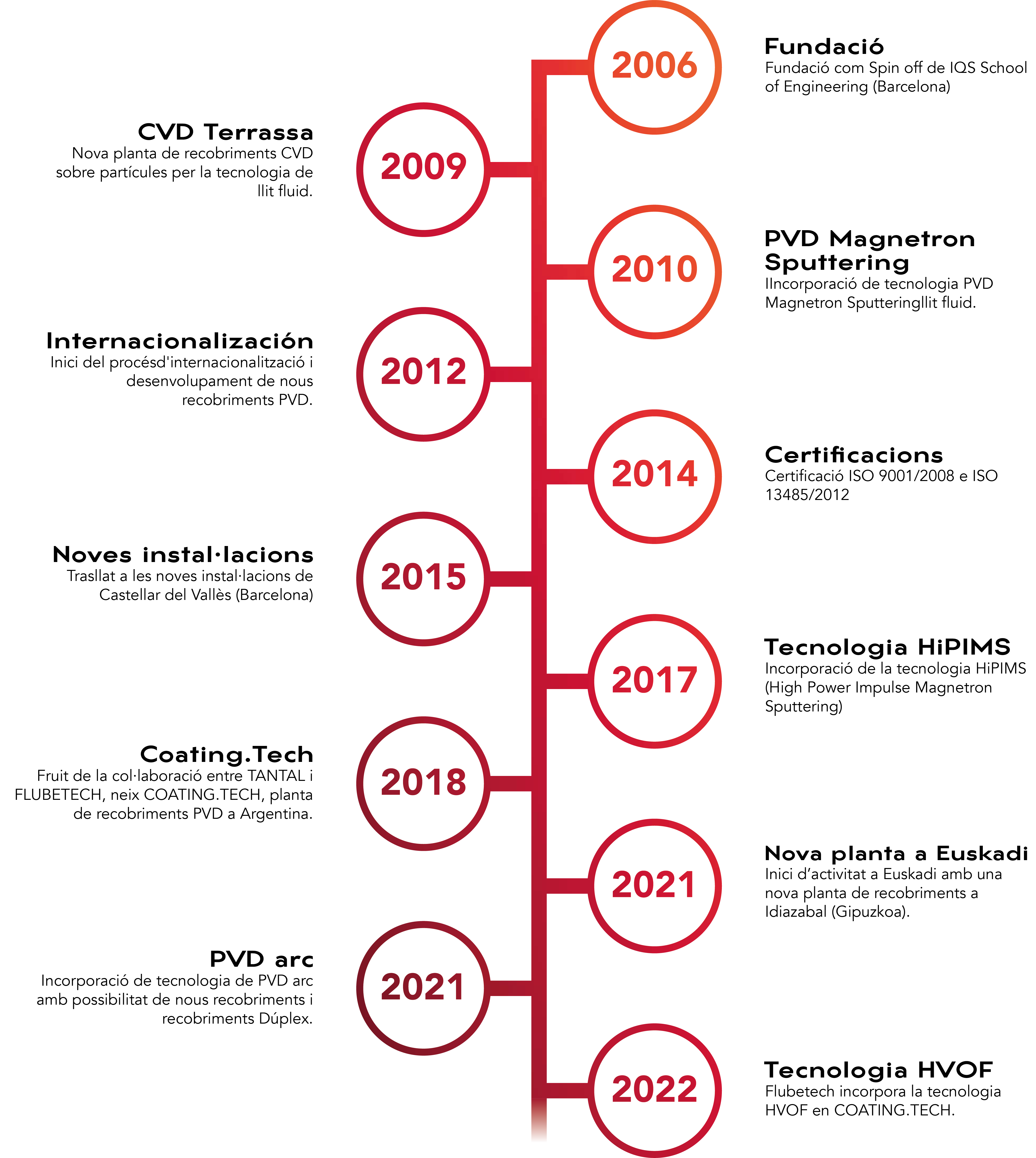Flubetech neix l’any 2006 amb l’objectiu de satisfer les necessitats del mercat en enginyeria de superfícies de forma innovadora. Basant-se en què? Basant-se en la gran experiència industrial i investigadora dels seus fundadors en l’aplicació de recobriments sobre peces sotmeses a desgast i fricció. Actualment, desenvolupem i apliquem recobriments per a multitud de sectors.